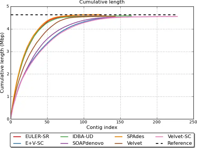 QUAST performs fast and convenient quality evaluation and comparison of genome assemblies.QUAST computes a number of well-known metrics, including contig accuracy, number of genes discovered, N50, and others, as well as introducing new ones, like NA50 (see details in the paper and in the manual). A comprehensive analysis results in summary tables (in plain text, tab-separated and LaTeX formats) and colorful plots. The tool also produces web-based reports condensing all information in one easy to navigate file.