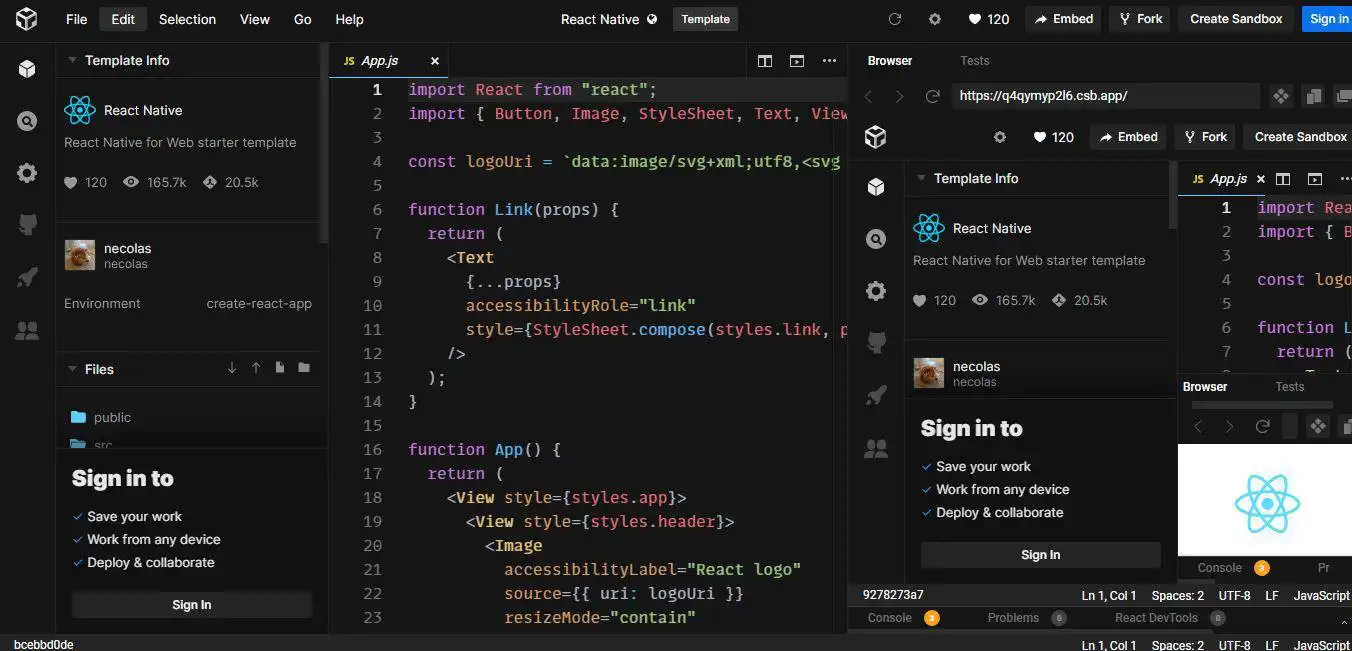Download and run online this app named React Native for Web with OnWorks for free.