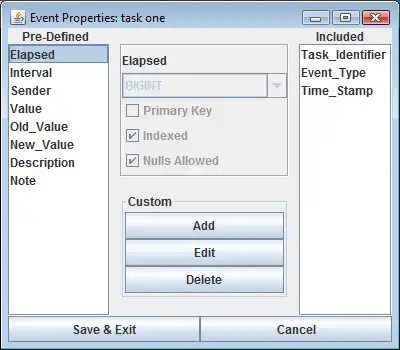 - Custom event property sets stored as JavaDB event log table records.
