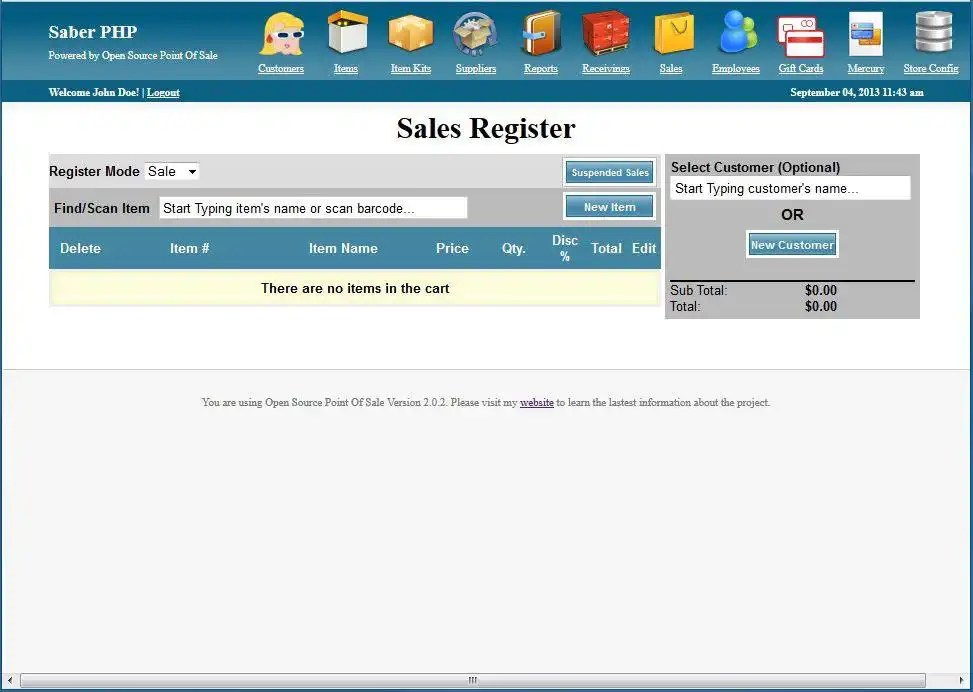 Download and run online this app named SaberPHP POS with OnWorks for free.