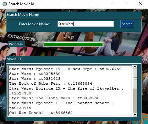 - Movie Id - It will search Movie Id using the Movie Name Provided