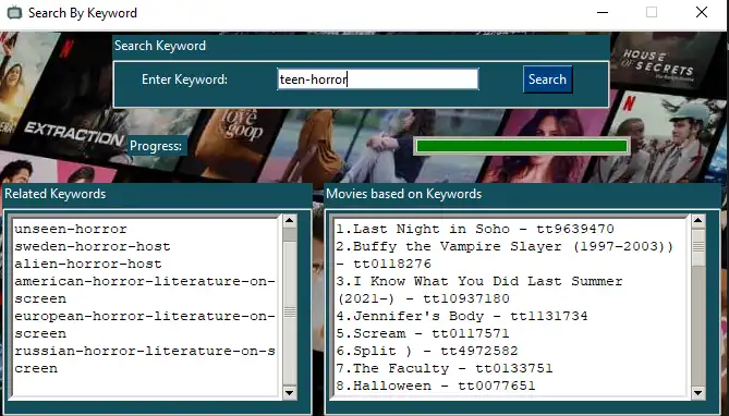 - Keyword - It will Search the movie Using Keywords and also find Related Keywords