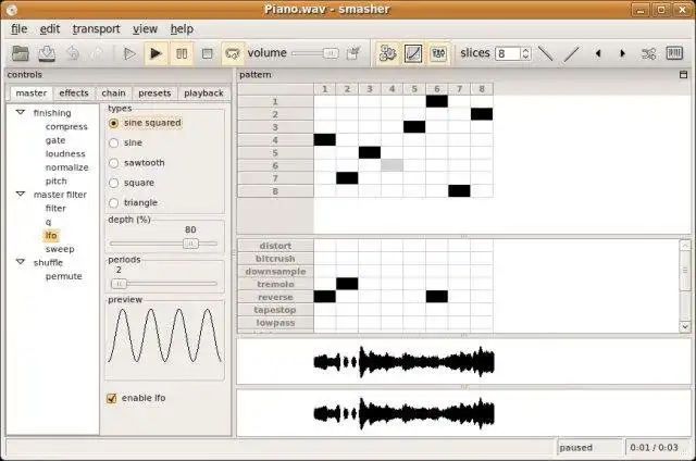 Cross-platform audio loop slicer designed to create sliced loops from WAV, MP3, FLAC or AIFF files in seconds without a sequencer. Effects include filter sweeps, phasing, flanging, delay, and distortion.