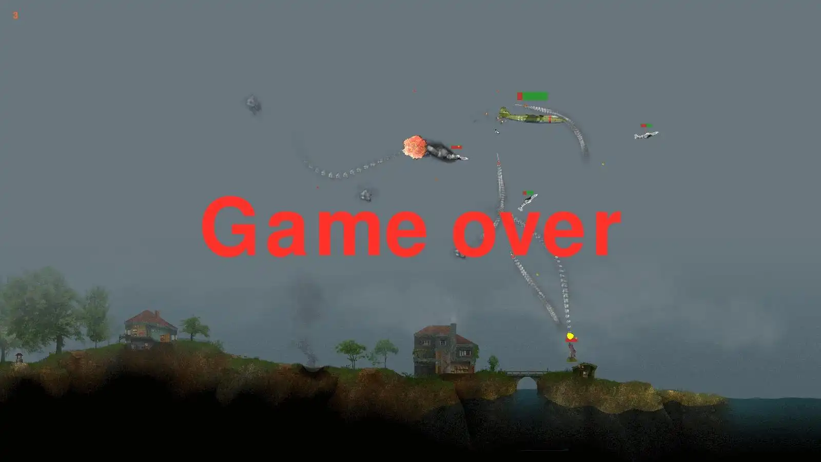 Летаем на самолёте, стреляем из пелемёта, запускаем ракеты, сбиваем противников.