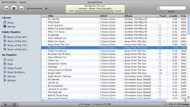 SpoonTunes is a very easy to install PHP/Ajax based MusicPlayer for the Web with a fancy GUI. The integrated FlashPlayer allows you to listen to imported songs of the local iTunes-Library. Search Songs, create Playlists, download them and more...