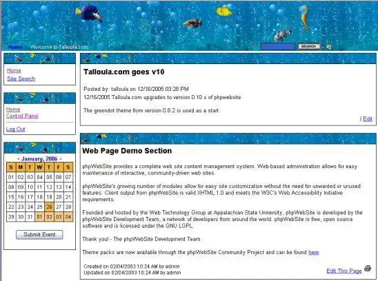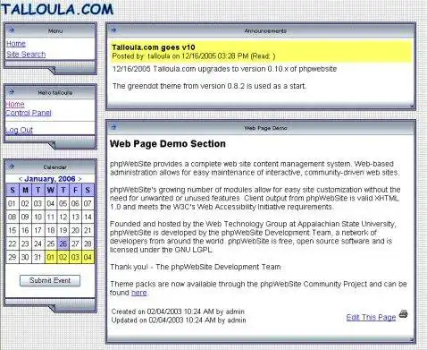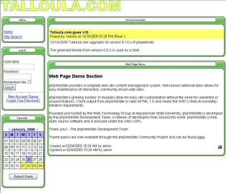 Talloula.com phpwebsite Themes Mods to run in Linux online
