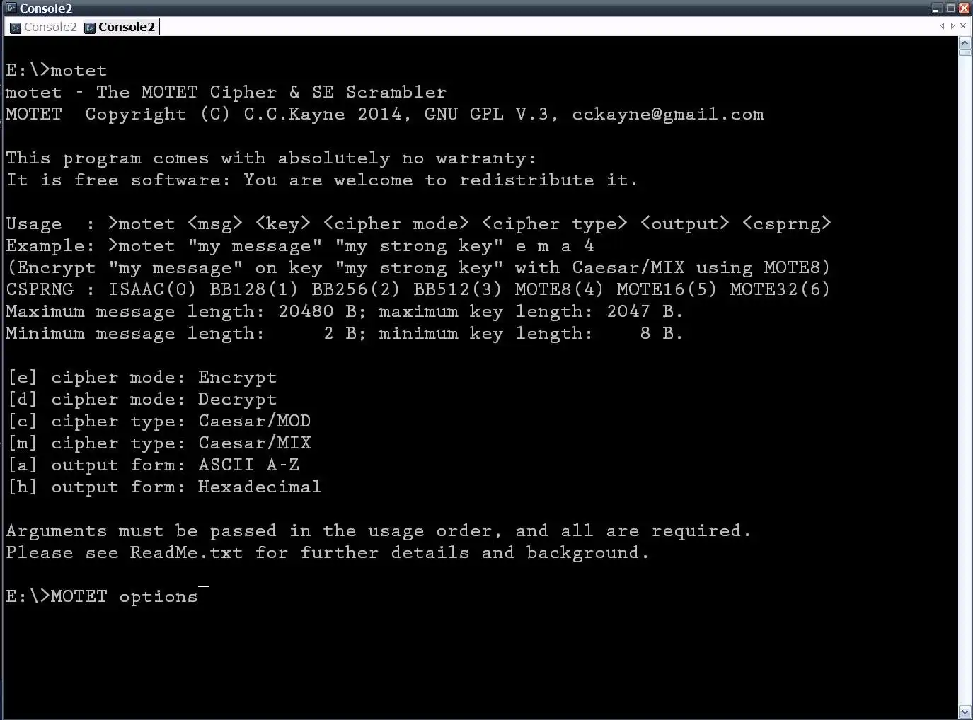 MOTET is a tiny, fast super-encipherment application written in C, featuring the new CSPRNG/stream ciphers MOTE and BEDBUG in each of their three variants, as well as the "gold standard" among ciphers, ISAAC.