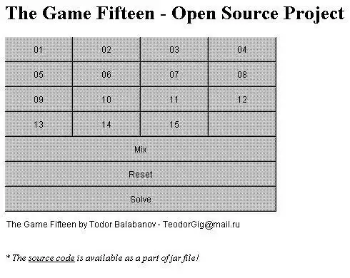 Popular Game 15 implemented in Java. The most intersting part of the project is the genetic algorithm which solving the puzzle. Play the game here: http://www.geocities.com/todordimitrovbalabanov/the15/