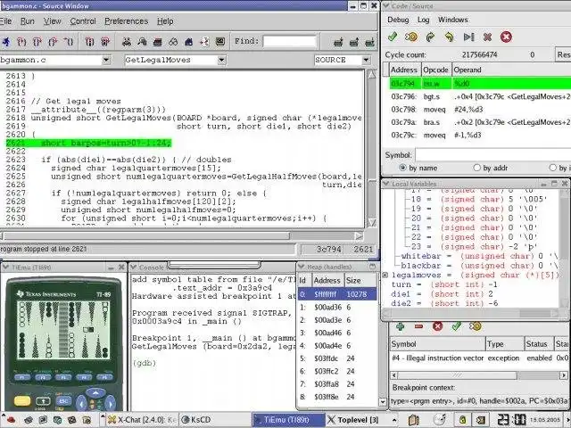 TiEmu is an emulator of Texas Instruments hand-helds (TI89/92/92+/V200) for Linux & Windows written with GTK. Full-featured with a graphical debugger.