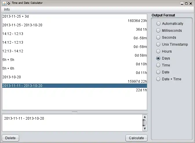 This is an application that can also be fetched from https://sourceforge.net/projects/timeanddatecalculator/. It has been hosted in OnWorks in order to be run online in an easiest way from one of our free Operative Systems.