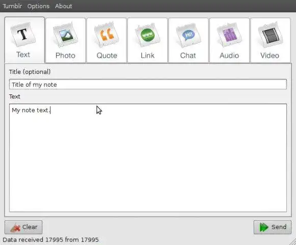 This is an application that can also be fetched from https://sourceforge.net/projects/tumblron/. It has been hosted in OnWorks in order to be run online in an easiest way from one of our free Operative Systems.