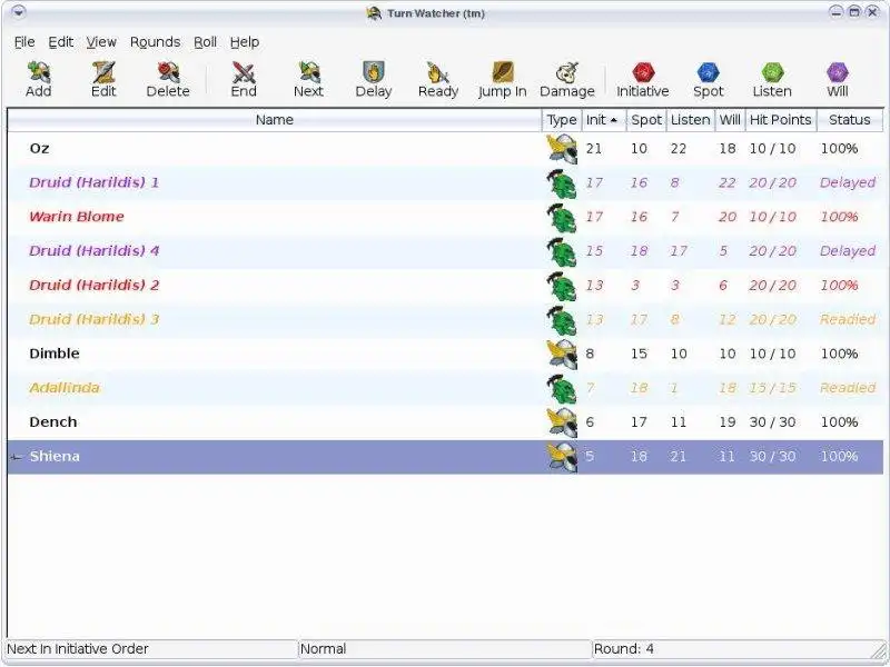 If you have ever wondered if there was a better way to manage your encounters, then Turn Watcher™ is the solution for you! Turn Watcher tracks any number of player characters' (PCs) and opponents' initiative order and hit points, freeing you to run your encounters smoothly and efficiently.