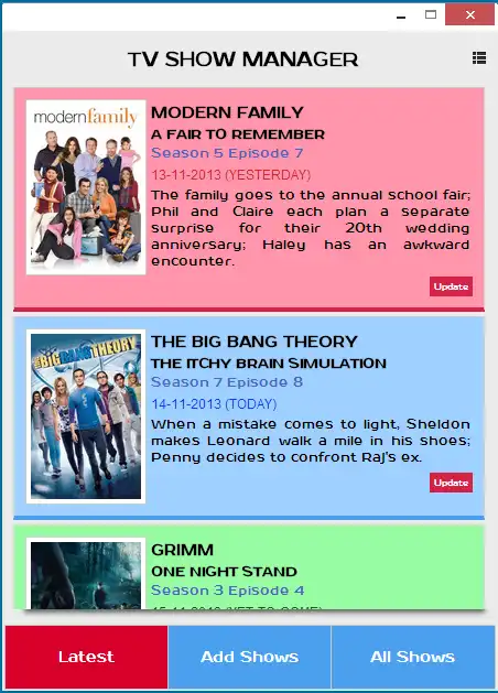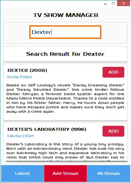 You can add as many shows as you want to the collection and find out detailed information about the and premiers. With TV Show Manager, you will never miss an episode again!