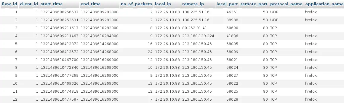 This system is designed to provide detail data about applications used in the Internet. This information can be used for:
