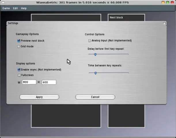 This is the Linux app named Wannabetris to run in Linux online whose latest release can be downloaded as wannabetris_winxp_0.9.2.zip. It can be run online in the free hosting provider OnWorks for workstations.