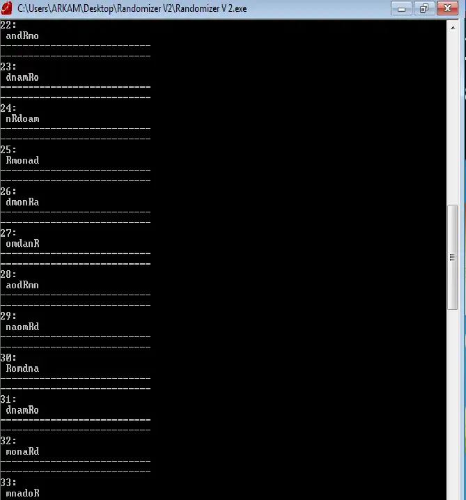 This is the Linux app named Word Randomizer whose latest release can be downloaded as RandomizerV4.zip. It can be run online in the free hosting provider OnWorks for workstations.