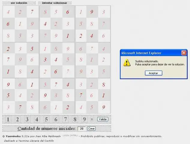 Yasminoku is an open source "Sudoku" alike game totally written in DHTML (JavaScript, CSS and HTML) that uses mouse. Includes sudoku solver. This cross-platform and cross-browser game was tested under BeOS, Linux, *BSD, Windows and others.Audience