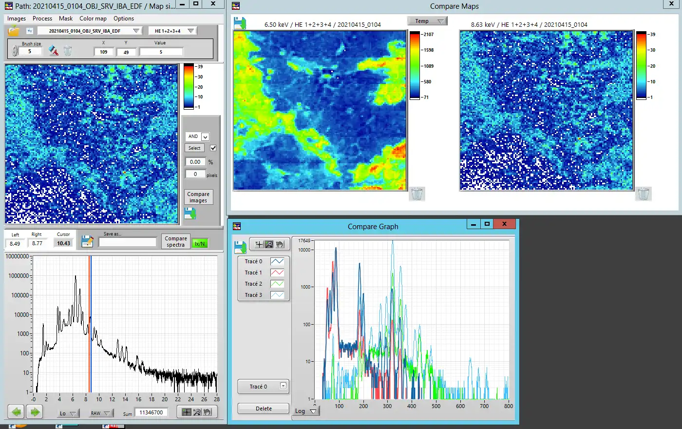 interface allows to easily pass from a detector to another and from an analysis to another. Elemental mapping is achieved by selecting a region of interest in the spectra and the corresponding picture can be saved.