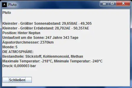 Die wichtigsten Astronomischen Informationen über das Sonnensystem. Nur in deutscher sprache!!!Um das Programm ausführen zukönnen, müssen sie die zip datei erst entpacken. Die Inhalte dürfen sie nicht verschieben!