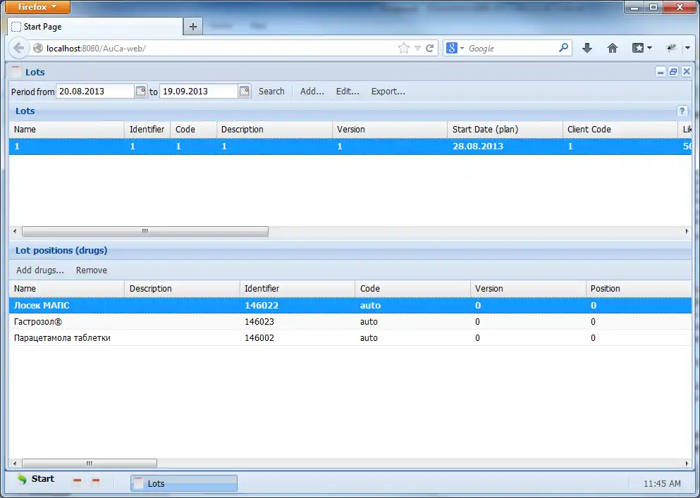 This is the Windows app named AuCa whose latest release can be downloaded as LoadDrugs-1.0-SNAPSHOT-jar-with-dependencies.jar. It can be run online in the free hosting provider OnWorks for workstations.
