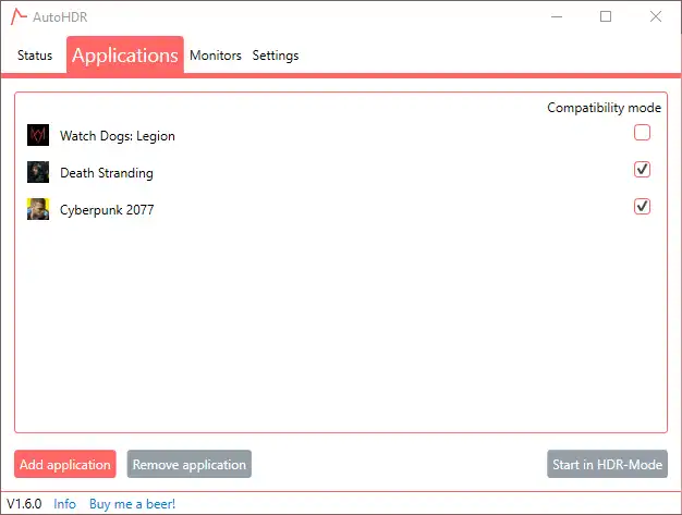 AutoHDR automatically activates HDR based on the running or focused application