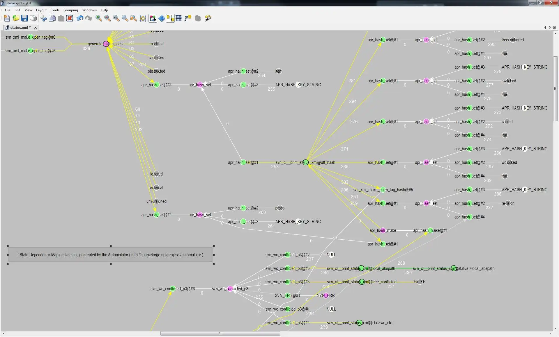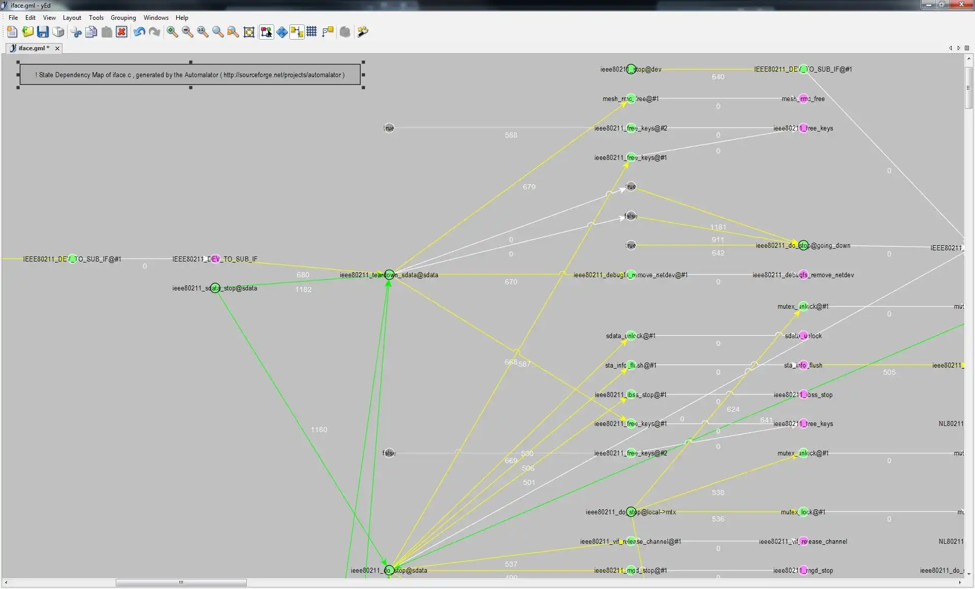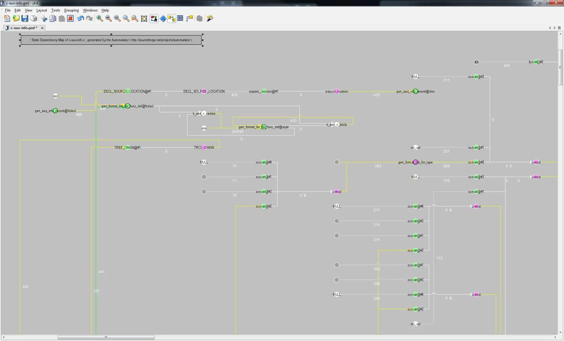 Flowcharts not telling you what you want to know about some C source code? Try a State Dependency map!Every C source file is an implemention of a state machine. Implicit in the definition of a state machine is a network of dependencies between the states.