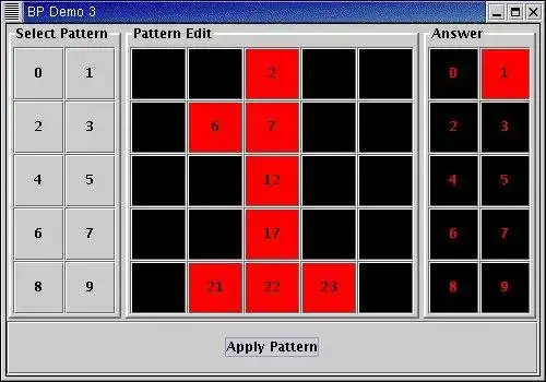 backprop1 provides a simple three layer backpropagation neural network implemented in java. There are three demo programs to perform point classification, the XOR problem and character recognition.