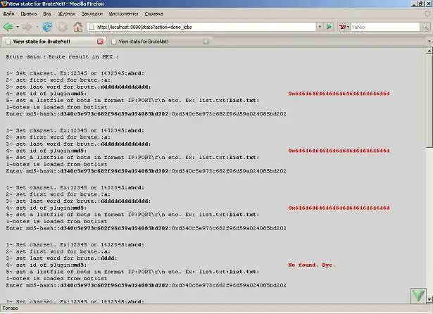 BruteNet is a system of the distributed brute force and distributed calculations built on user extensions capable to solve a great number of problems related to the partition on a lot of machines.With sample extention you can distribute brute md5-hashAudience