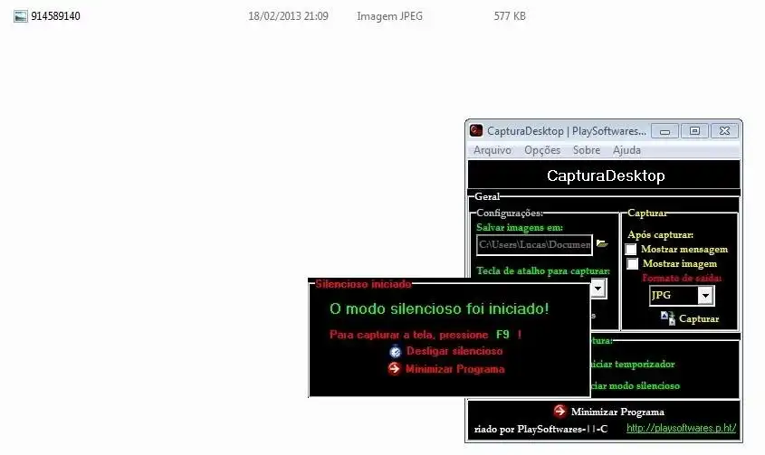 Modo Silencioso(ideal para games e aplicações em Run-Time):Configure uma tecla (F9, F10, F11 ou F12) e clique em iniciar modo Silencioso, e quando for capturar aperte a tecla configurada.