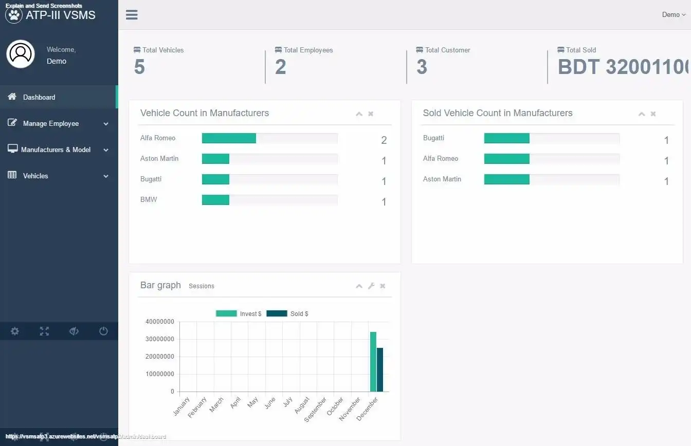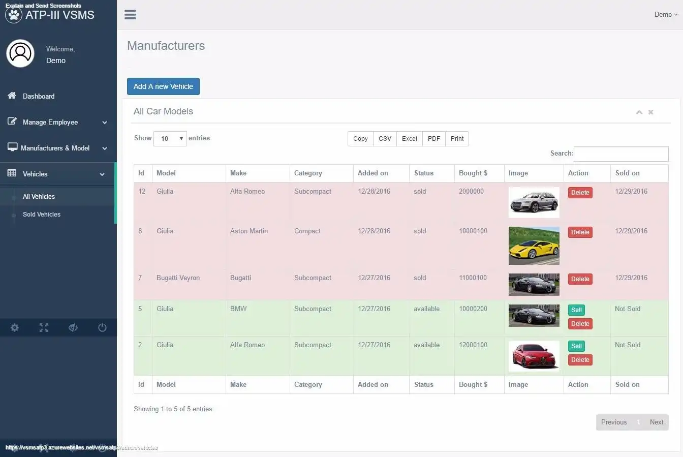 Admin Features : # Add, Edit , Delete almost anything(Including new users), Sell vehicles, See customer Details