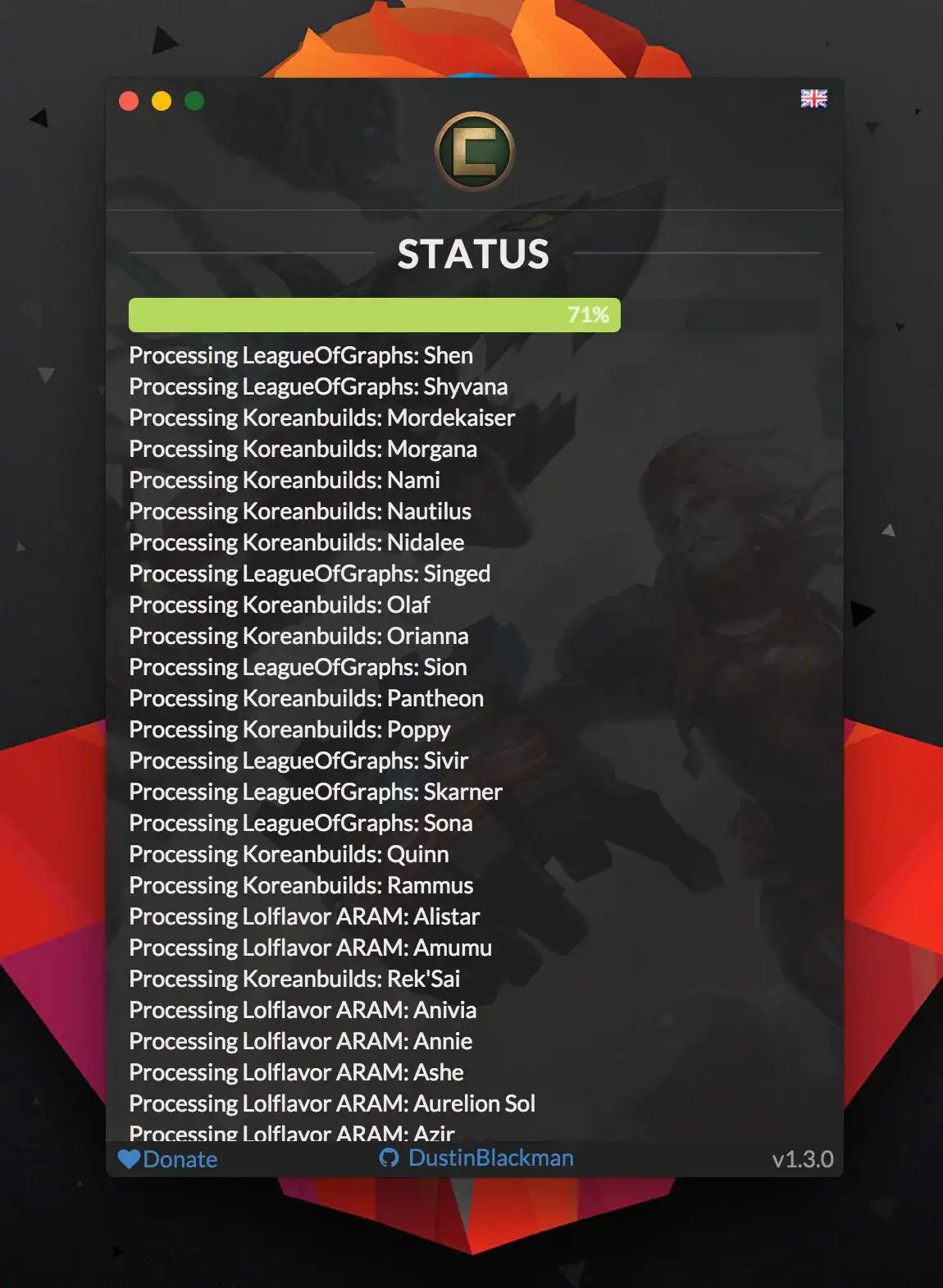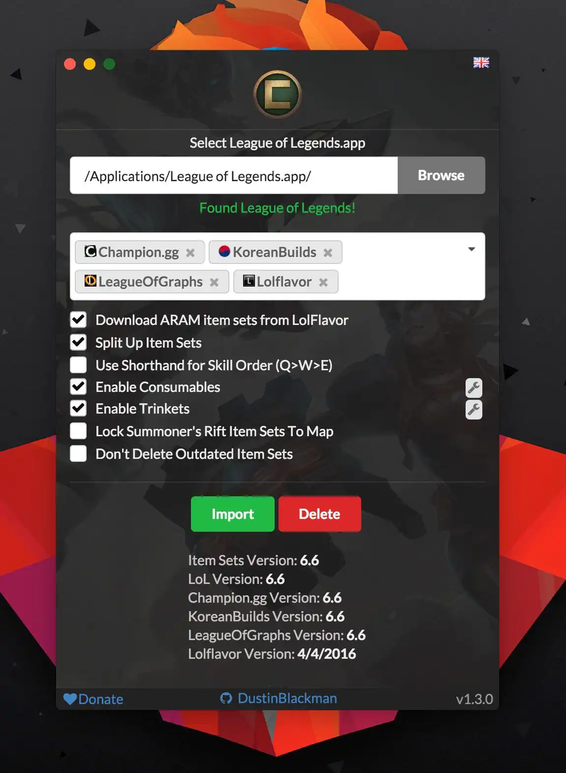Championify brings you the critical information you need to succeed in League of Legends by downloading all the latest items from sites like Champion.gg, Lolflavor, and KoreanBuilds and importing them into your game. Get the highest winning builds, most popular skills upgrades and more and achieve the best in League of Legends with Championify.