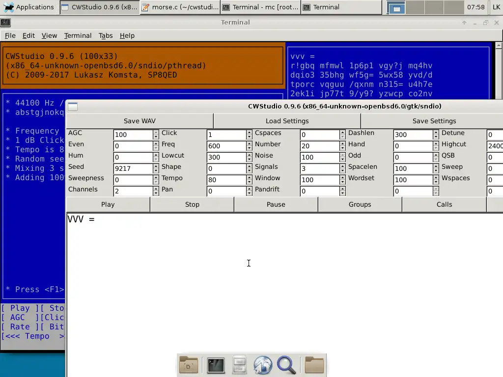 CWStudio is a portable almost library-independent and computationally efficient generator of CW signals for telegraphy training purposes. It can create a sound with maximum similarity to the real air, simulating many difficulties.