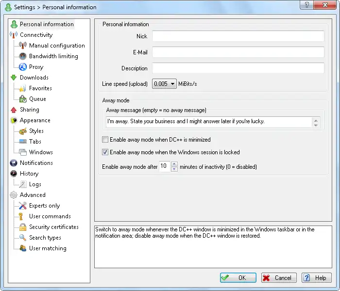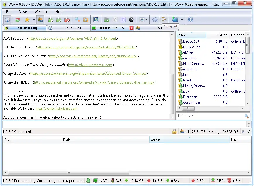 Free download DC++ Windows app to run online win Wine in Ubuntu online, Fedora online or Debian online