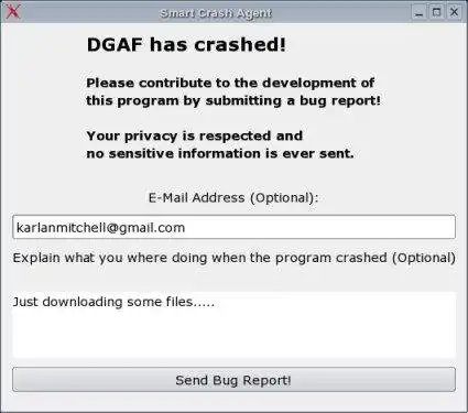 This is the Windows app named Distributed Web Project whose latest release can be downloaded as dgaf_source.tar.bz2. It can be run online in the free hosting provider OnWorks for workstations.