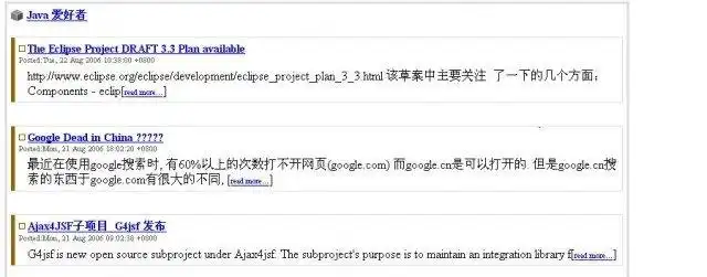 project goal is easily show rss content in JSF pages. use RSS4JSF, you just need put the RSS4JSF.jar and the only need jar (rsslib4j-0.2.jar) in you WEB-INF/lib . and you can use the r4j tag to show rss content. please see the demo.
