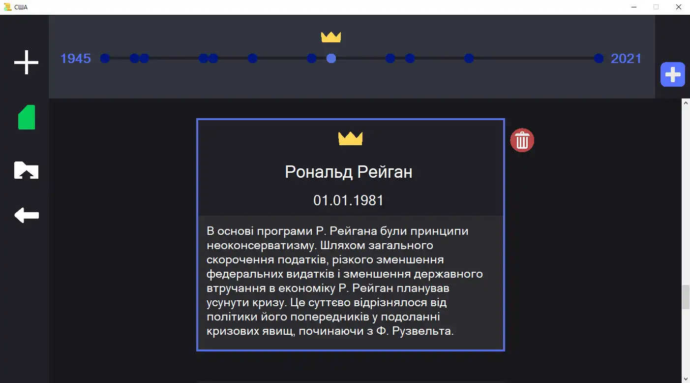 Easy History – це програма для вивчення історії, що дозволяє вчити дати, показує послідовність подій і дозволяє користуватися іншими функціями для полегшення навчального процесу. З допомогою цієї програми користувач може вивчати історію, створюючи події, записуючи їхні дати і описувати ці події.