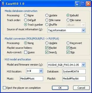 EasyH10 is an open source project to develop a software suit for iriver H10 music players. The immediate objective of this project is: to understand the specification of the media database and playlists; and to release the softwares for the H10 players.