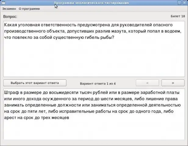 Simple software for testing user knowledge. Was developed with ecological education in mind, but can be used for other purposes. Testee should answer questions in a ticket, which is selected randomly. Made with Qt.