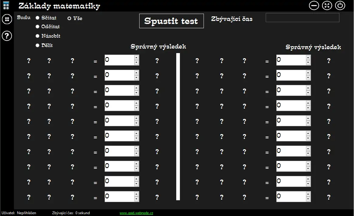 Program created for small pupils for practise basic mathematical operations (+,-,*,/). Program has simply design, settings and user managing. Pupil or people, who will be used this program, registered and with it get password and can save settings and tests. Person can see how is on the upgrade or no.