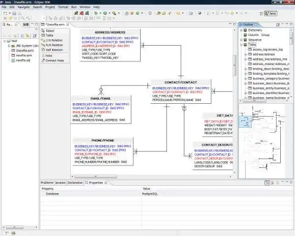 ERMaster is Eclipse plug-in to make ER diagram. Functionally, Import from data base, Making of table definition book on Excel, Image output, DDL output, etc. are being offered.Features