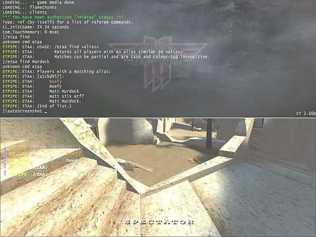 ETPipe is a small Python utility for RTCW:Enemy Territory. It serves as a platform for plugins to dynamically read/write to the in-game console. Some useful standard plugins are included by default and users can easily script their own.Audience