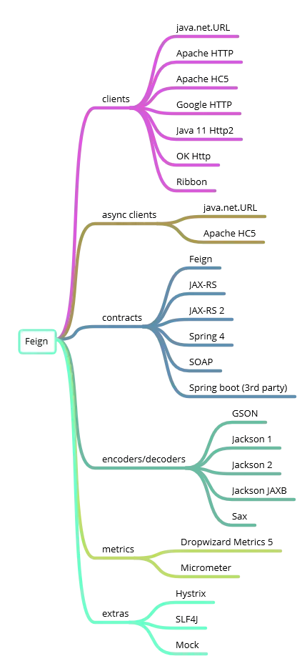 Feign makes use of great tools like Jersey and CXF for writing Java clients for ReST or SOAP services. It also lets you write your own code on top of http libraries, and connects your code to http APIs with little overhead.