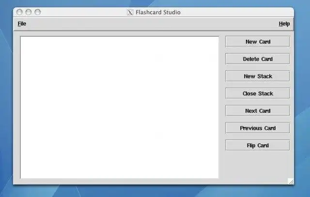 This is an application that can also be fetched from https://sourceforge.net/projects/flashcardstudio/. It has been hosted in OnWorks in order to be run online in an easiest way from one of our free Operative Systems.