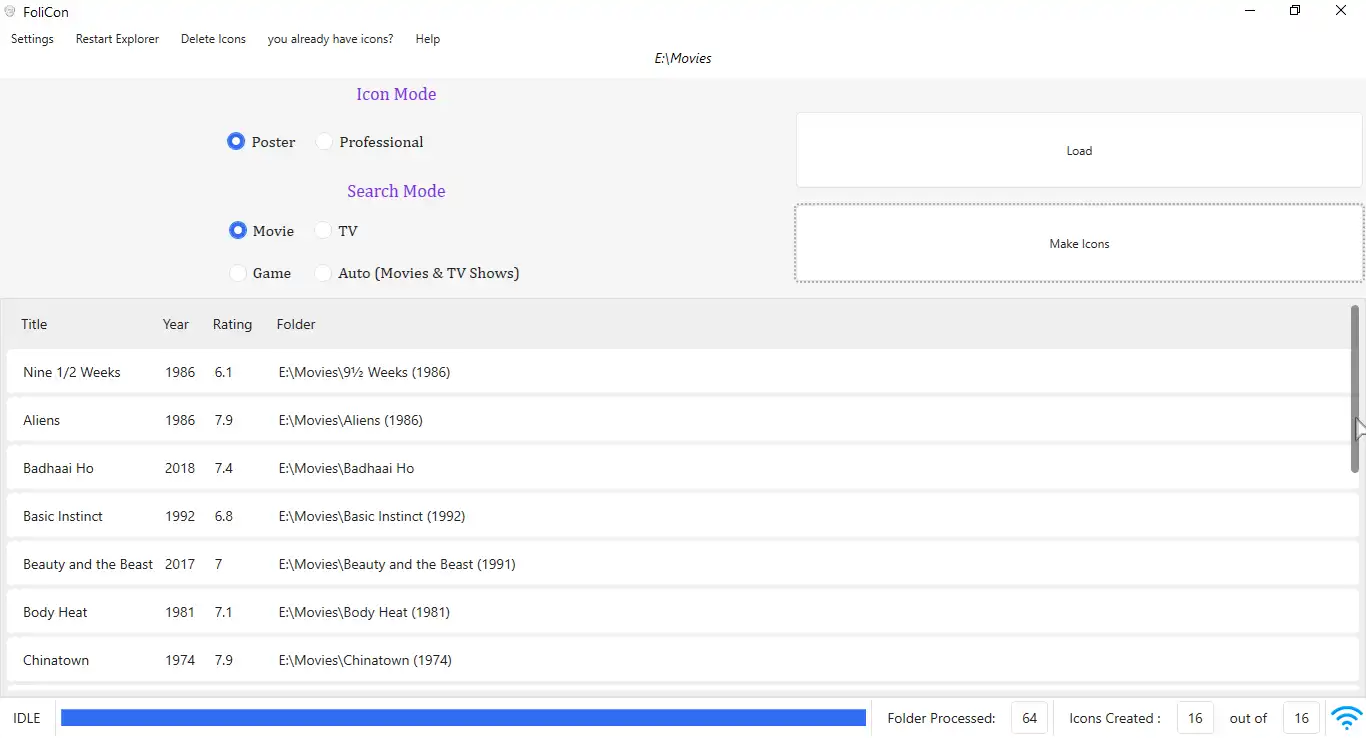 This Application Converts your Boring Movie, Shows, Game Folder Icons to A good Looking, and informative icons, Which includes their Rating too.