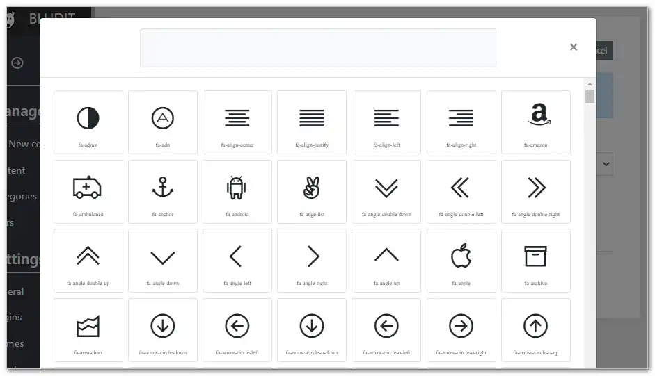 FontAwesome Helper is a Bludit plugin which can help for developers quickly review and insert icons into the HTML source.