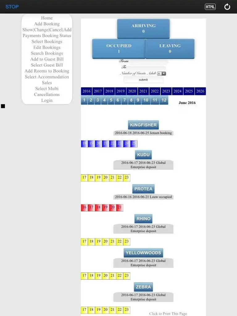 Flexible booking procedure allowing clear detailing of booking status, rate-per-day, meals, discounted guests, accomodation type and guest details