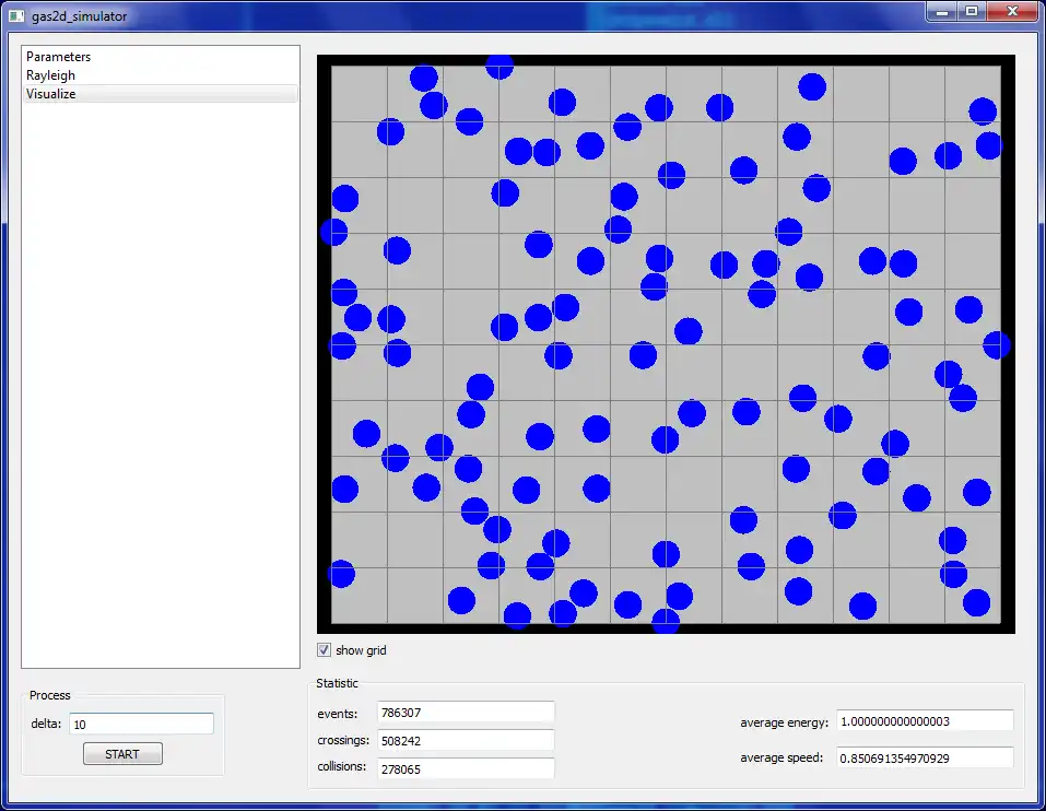 The program allows to simulate and visualize the behaviour of monoatomic gas in 2D.