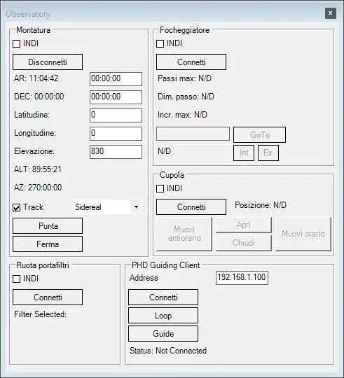 HSPI offers to the astronomer the possibility to capture pictures from the CCD camera in a fast and intuitive way, keeping under control all the instrumentation in posses. HSPI can control the CCD camera, the mount, the focuser, the filter wheel and the dome from a single interface, and not only this: these features can be added on as many observatories and instrumentations you want.HSPI is ASCOM and INDI compatible, so if you want to use particular setups like Linux computers connected with your instrumentation and control them from remote then HSPI is your choice! After a few clicks you can see the images coming from your cameras connected through Internet or your LAN.