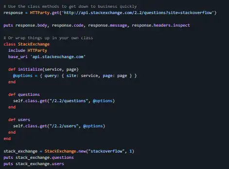 - Includes the executable httparty which can be used to query web services