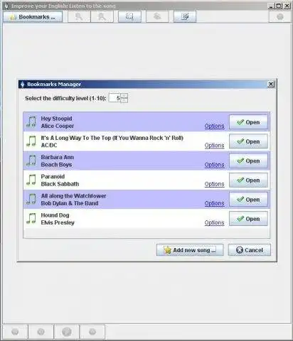 This is the Windows app named Improve your English: Listen to the song whose latest release can be downloaded as listentothesong-0.1b-multiplatform-jar.zip. It can be run online in the free hosting provider OnWorks for workstations.